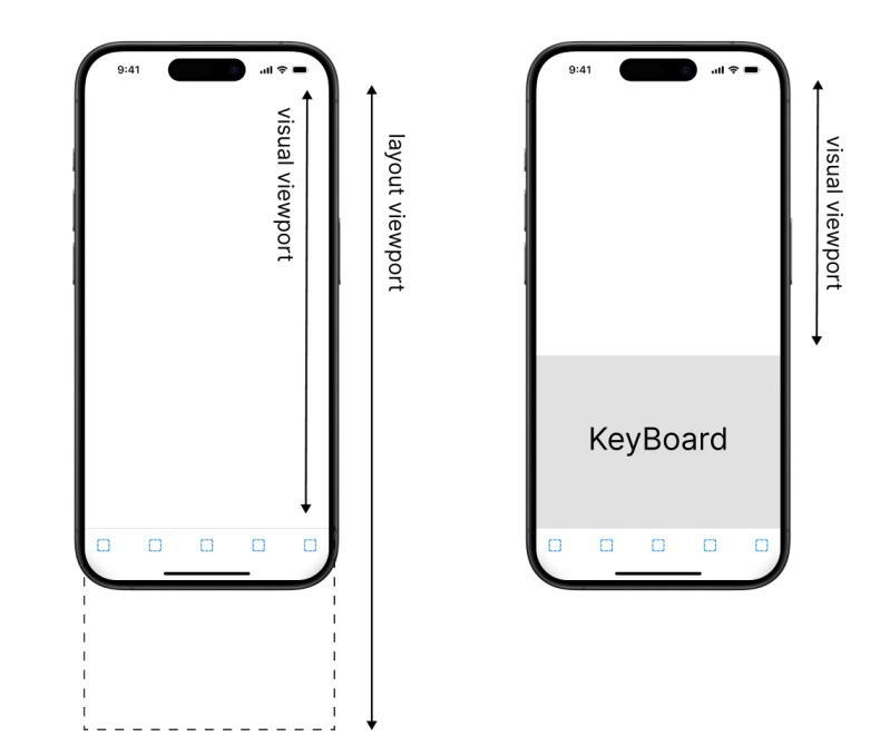 따라서 Visual Viewport Web API를 사용하여 visual viewport에 resize 이벤트가 발생했을 때 visual viewport의 height를 가져와야 합니다.